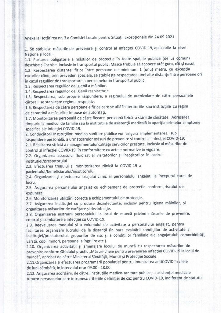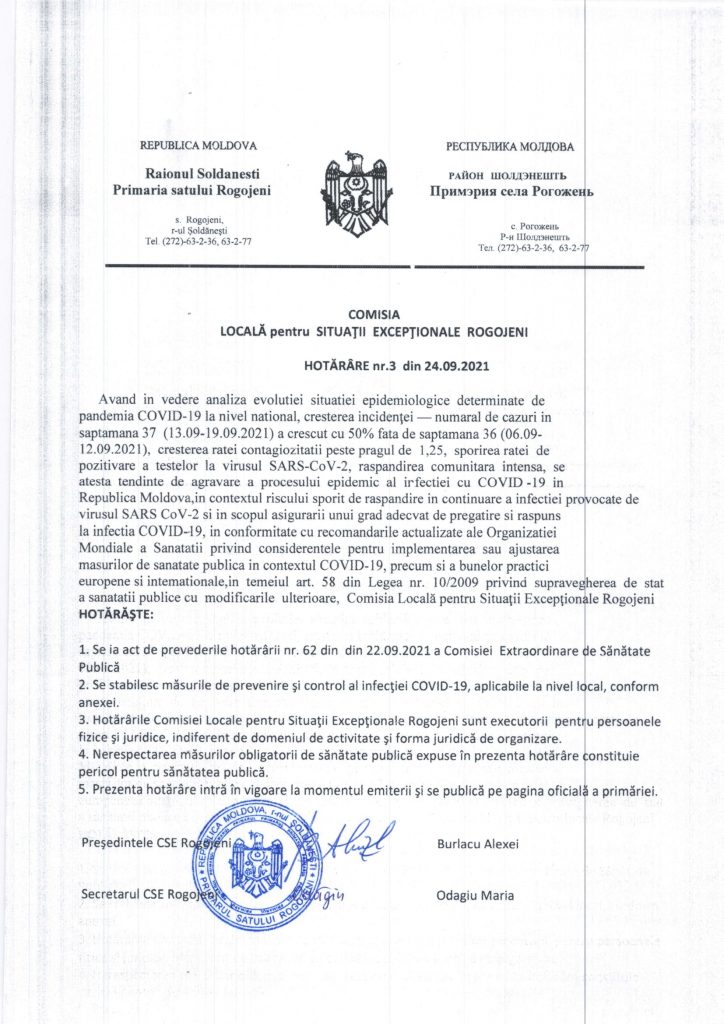 HOTĂRÂREA CSE nr.3 din 24.09.2021 cu privire la situația epidemiologică