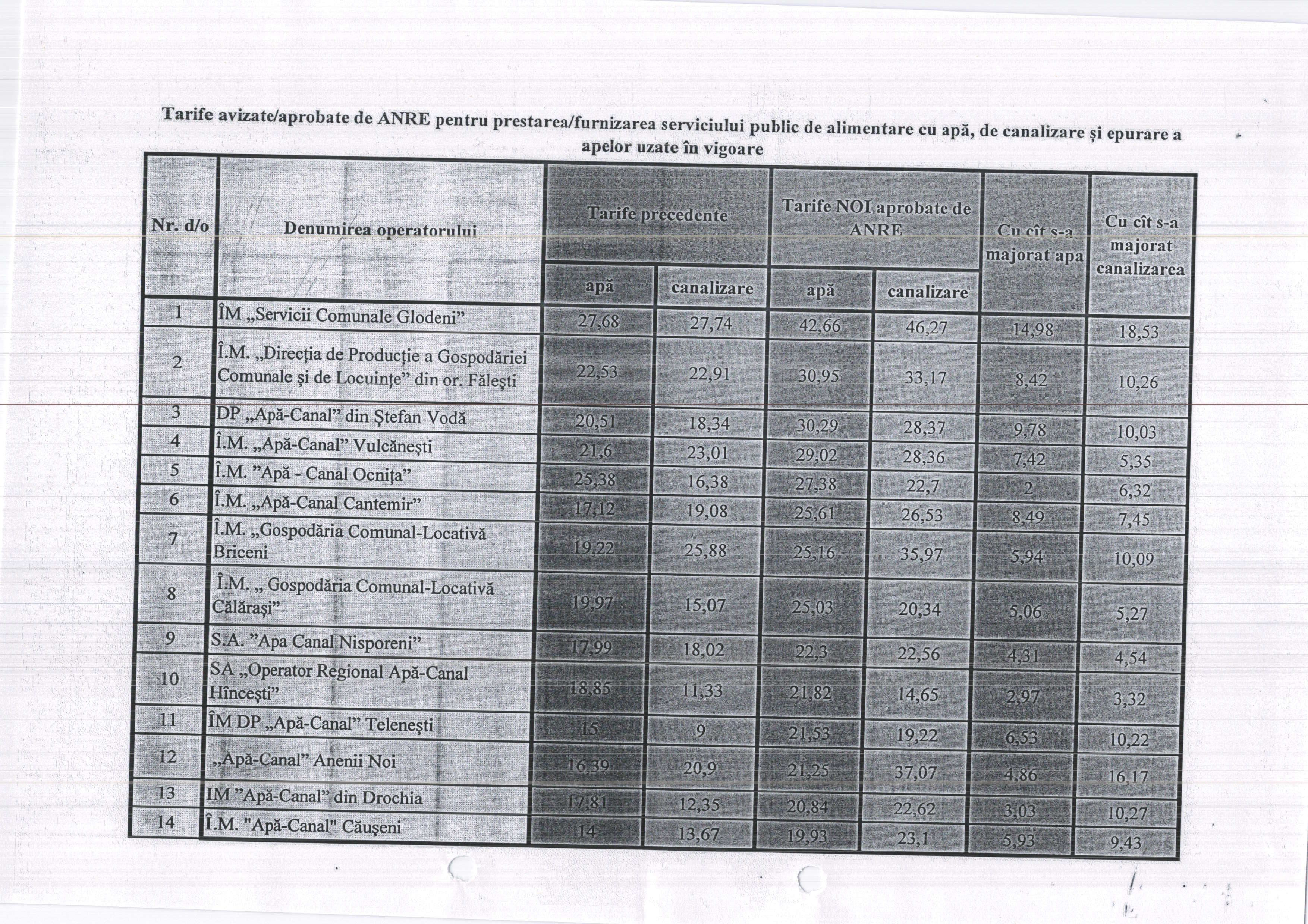 Tarife noi la apă