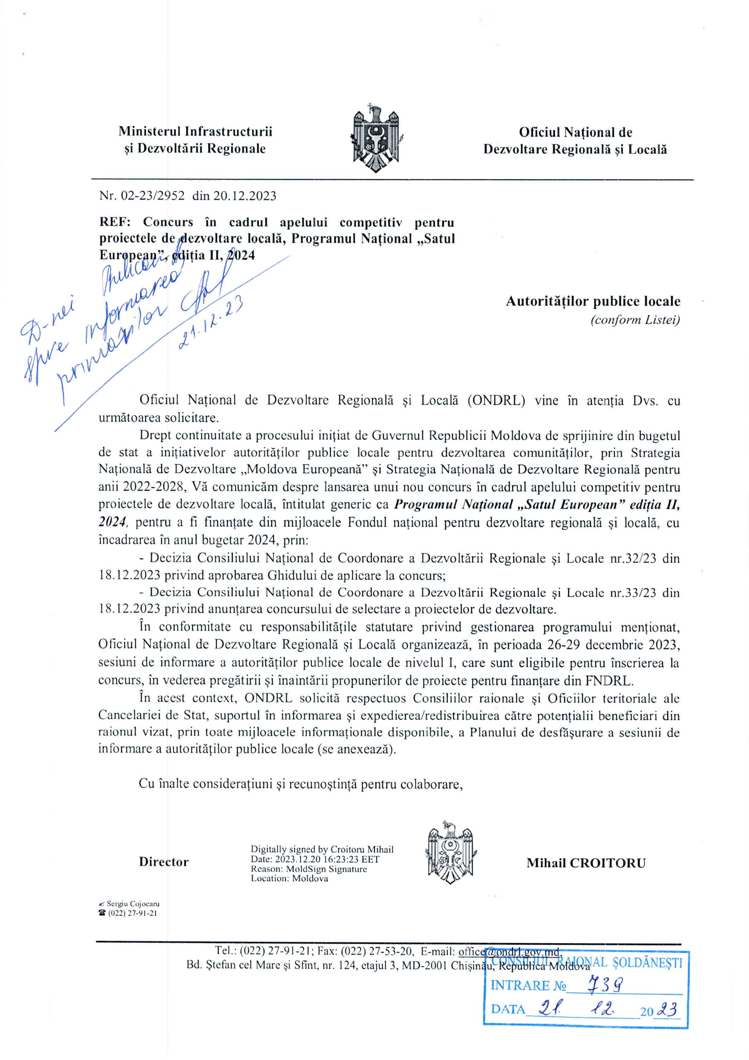 Concurs în cadrul apelului competitiv pentru proiectele de dezvoltare locală, Programul Național „Satul European”, ediția II, 2024