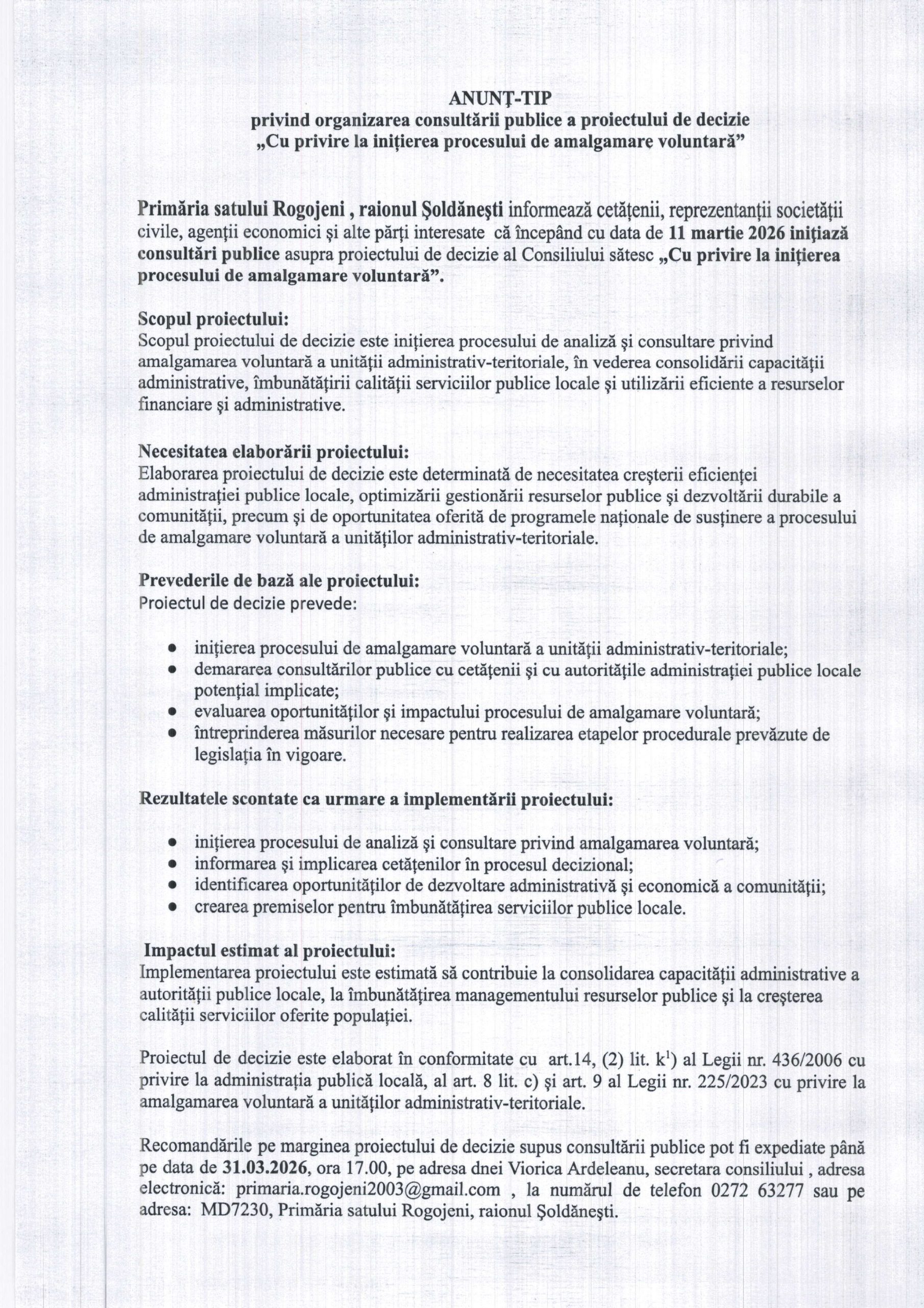Anunţ privind organizarea consultărilor publice